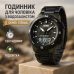 Циферблат оформлений у багаторівневому стилі з чіткими мітками та яскравими елементами, які підкреслюють спортивний характер моделі. Цифровий екран показує час, дату, день тижня та інші корисні функції. Вбудоване підсвічування дозволяє легко користуватись годинником у темряві, а водозахист 5 ATM дає змогу не турбуватись про вологу під час дощу чи миття рук.
