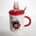 Кубок порцелянова з кришкою і ложкою Labubu 400 (мл) подарункова кружка прикольна чашка для дітей на подарунок Червоний FM-35D (82804)
