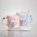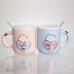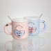 Набір парних порцелянових чашок із серцем 2 (шт) по 400 (мл) чашки на подарунок із кришкою та ложкою Рожевий з блакитним FM-32 (39146)