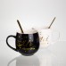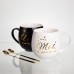 Набір парних порцелянових чашок Mr&Mis 2 (шт) по 350 (мл) чашки на подарунок з ложкою Чорний з білим FM-29 (72199)