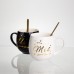 Відгуки про Набір парних порцелянових чашок Mr&Mis 2 (шт) по 350 (мл) чашки на подарунок з ложкою Чорний з білим FM-29 (72199)