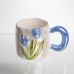 Новорічна порцелянова чашка для чаю та кави "Ніжний Тюльпан" з 3D-декором 400 мл, святкова кружка чашка на подарунок Блакитний FM-40D (81819)