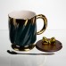 Додайте нотку справжньої розкоші до вашої кавової паузи! Ця вишукана порцелянова чашка створена для тих, хто цінує елегантність у деталях. Чашка має стильний дизайн з рельєфною спіральною текстурою та щедрим золотим покриттям на ручці, обідку та основі. Великий об'єм 450 мл ідеально підходить для улюблених гарячих напоїв. Але головна родзинка — у повній комплектації: Стильна кришка: У комплекті йде кришка під темне дерево, прикрашена милою ручкою у вигляді золотого бантика. Вона допоможе зберегти ваш напій гарячим. Ложечка: Елегантна металева ложка ідеально доповнює набір. Основні характеристики новорічної чашки на подарунок: Висота: 14 см; Діаметр: 8.5 см; Об'єм: 450 мл; Матеріал: порцеляна. Завдяки своєму преміальному вигляду та продуманій комплектації, ця чашка стане чудовим, розкішним подарунком для близької людини або стильним доповненням вашої власної колекції.