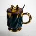 Новорічна порцелянова чашка «Золотий Вихор» 450 мл з кришкою і ложкою Yiwu FM-23A (89218)