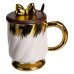 Новорічна порцелянова чашка «Золотий Вихор» 450 мл з кришкою і ложкою Yiwu FM-23D (60315)