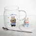 Основні характеристики Новорічна велика скляна чашка "Лабубу" з кришкою та ложкою 600 мл, Святкова кружка чашка для дітей на подарунок Блакитний FM-56D (67026)