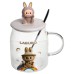 Основні характеристики Новорічна велика скляна чашка "Лабубу" з кришкою та ложкою 600 мл, Святкова кружка чашка для дітей на подарунок Коричневий FM-56C (66533)