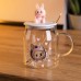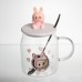 Основні характеристики Новорічна велика скляна чашка "Лабубу" з кришкою та ложкою 600 мл, Святкова кружка чашка для дітей на подарунок Рожевий FM-56B (62116)
