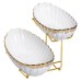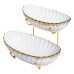 Двухъярусная фруктовница предназначена для сервировки и удобной подачи фруктов, сладостей или закусок. Она состоит из двух керамических тарелок белого цвета с изящным золотистым ободком, расположенных на разных уровнях. ...