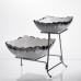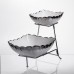 Двоярусна фруктовниця призначена для сервірування та зручного подавання фруктів, солодощів або закусок. Вона складається з двох порцелянових тарілок білого кольору з витонченим сріблястим обідком, розташованих на різних рівнях. Така конструкція дає змогу розмістити більшу кількість продуктів, заощаджуючи місце на столі. Металева підставка сріблястого кольору забезпечує стійкість фруктовиці та надає вишуканого вигляду. Між ярусами є достатній простір для зручного розміщення фруктів середнього та великого розміру. Гладка поверхня тарілок легко миється і стійка до подряпин, що робить практичним у повсякденному житті та на святковому столі. Основні характеристики фруктовиці: Розмір: 27×21×25 см; Матеріал: порцеляна; Матеріал підставки: метал; Діаметр: 16, 21 см; Висота ножки: 20 см; Об'єм: 0.5, 1.3 л. Завдяки продуманому дизайну фруктовниця підходить як для домашнього використання, так і для сервірування під час прийомів або банкетів. Вона поєднує естетичність і функціональність, забезпечуючи ефектне подавання страв.