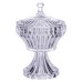 Цукерниця на ніжці з кришкою виготовлена з прозорого рельєфного скла, що візуально нагадує кришталь. Виріб має округлу форму з розширеною чашею і високою фігурною ніжкою, яка плавно переходить у широку основу. Завдяки ре...