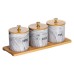 Набір порцелянових банок для сипучіх на підставці 3 шт. по 250 (мл) для чаю кави цукру Сірий SCT-664 (44435)