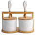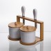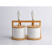 Набір із двох порцелянових маслянок на бамбуковій підставці — це зручне й елегантне рішення для зберігання вершкового масла, соусів або намазок. Кришки з натурального бамбука обладнані круглими ручками, що робить їх легк...