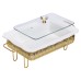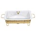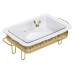 Керамічний прямокутний марміт призначений для подачі гарячих страв з підтриманням їхньої температури протягом усього прийому їжі. Ємність виготовлена з кераміки, яка рівномірно прогріває та зберігає тепло, а скляна кришка дозволяє контролювати вміст без необхідності її знімання. Щільне закривання допомагає утримувати аромат і свіжість страви. Основні характеристики марміту: Розмір з підставкою: 39×24×16.5 см; Розмір без підставки: 32×23×10 см; Об'єм: 2 л; Матеріал марміту: фарфор; Матеріал кришки: скло; Матеріал підставки: метал. Металева підставка забезпечує стійкість конструкції та має спеціальне місце для розміщення свічки-таблетки, яка підтримує оптимальну температуру страви. Завдяки цьому марміт зручний для використання під час святкових обідів, фуршетів чи сімейних вечерь. Плавний підігрів свічкою дозволяє уникнути пригорання та пересушування їжі. Конструкція марміта проста у догляді: керамічну ємність та скляну кришку можна легко мити, а металева підставка стійка до деформацій і довговічна. Такий посуд стане практичним рішенням для ефектної подачі та збереження тепла страв на будь-якому застіллі.