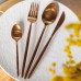 Набір столових приборів бронзового кольору складається з 24 предметів: 6 столових ложок, 6 чайних ложок, 6 виделок і 6 столових ножів. Кожен предмет має класичний дизайн без зайвих декоративних елементів, що робить їх ун...