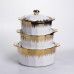 Набір супниць порцелянових 3 (шт) 1.5/2/3 (л) каструлі бульйонниці з кришкою та ручками для дому та ресторану з позолотою ML-T26-3 (33675)