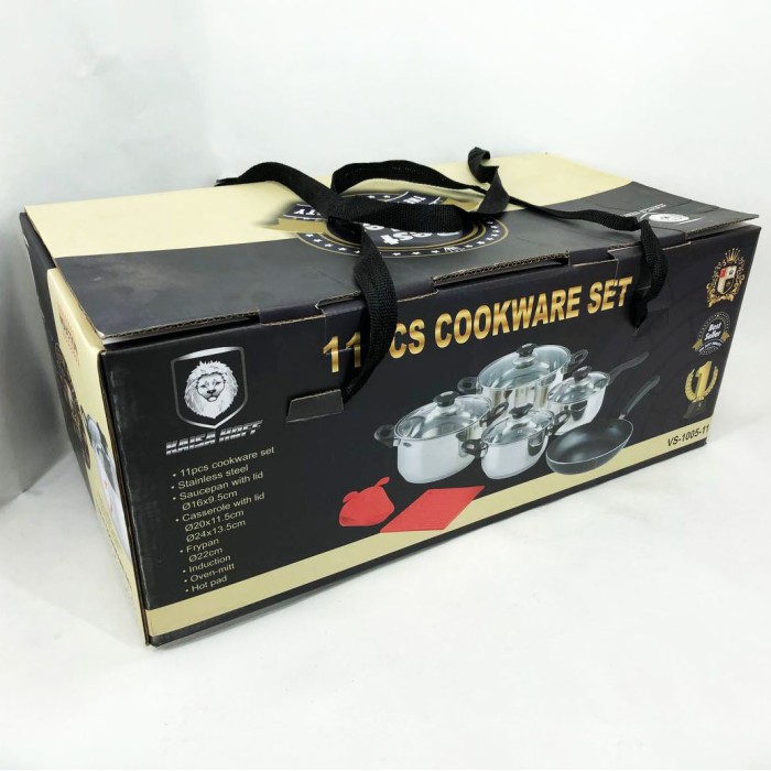 Опис Комплект металевих каструль 11, Набір каструль якісних з кришками, Каструля з нержавіючої сталі AQ-86