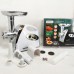 Потужність двигуна 3800 Вт, 2 гострі ножі з нержавіючої сталі. Головка корпусу із алюмінію. Набір ґрат для приготування фаршу. Низький рівень шуму. Хрестоподібний ніж із нержавіючої сталі.