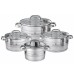 Заклепані сталеві ручки не нагріваються та забезпечують безпечну експлуатацію. Жароміцні скляні кришки з паровідведенням дозволяють контролювати процес приготування без втрати тепла. Набір підходить для всіх типів плит, включаючи індукційні, легко миється та підходить для посудомийної машини.