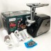 Корпус виконаний з нержавіючої сталі та удароміцного пластику, прогумовані анти-ковзні ніжки. Потужність двигуна 3800W. Два гострі ножі з високоякісної нержавіючої сталі. Набір ґрат для приготування фаршу. Низький рівень шуму.